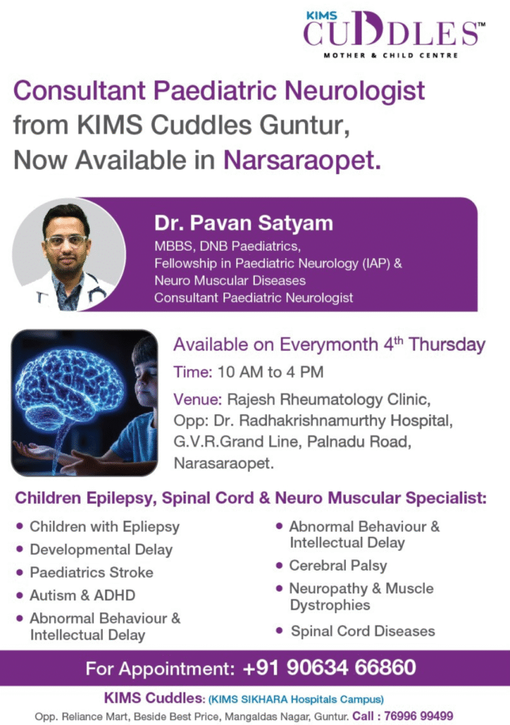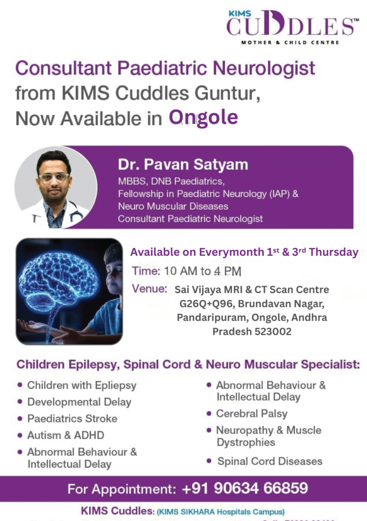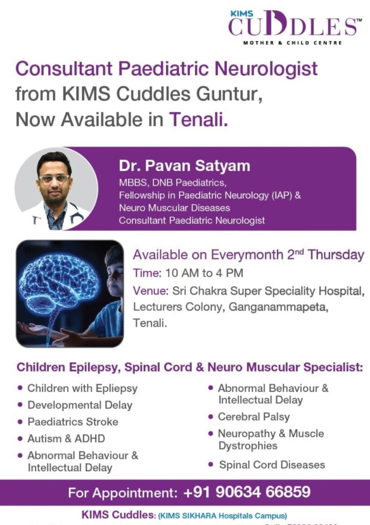 Dr. Pavan Satyam is a dedicated Paediatric Neurologist with an MBBS, DNB in Paediatrics, and specialized Fellowships in Paediatric Neurology (IAP) and Paediatric Neuromuscular Diseases. He has developed deep expertise in managing Paediatric Neuromuscular Disorders, epilepsy, and other complex neurological conditions.